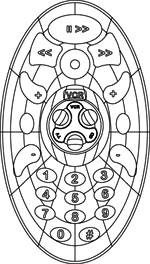 MULTI-FUNCTION The remote offers multiple functions common to most universals. Three settings are available for different devices. The central domed transparent knob turns to select the device.